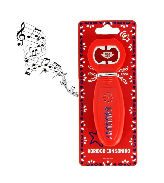 ¡Sorprende a tus invitados y abre tus botellas al mejor estilo dieciochero con este abridor de botella con sonido personalizado! Un objeto muy útil a la vez que decorativo, perfecto para tu ambientación de Fiestas Patrias.