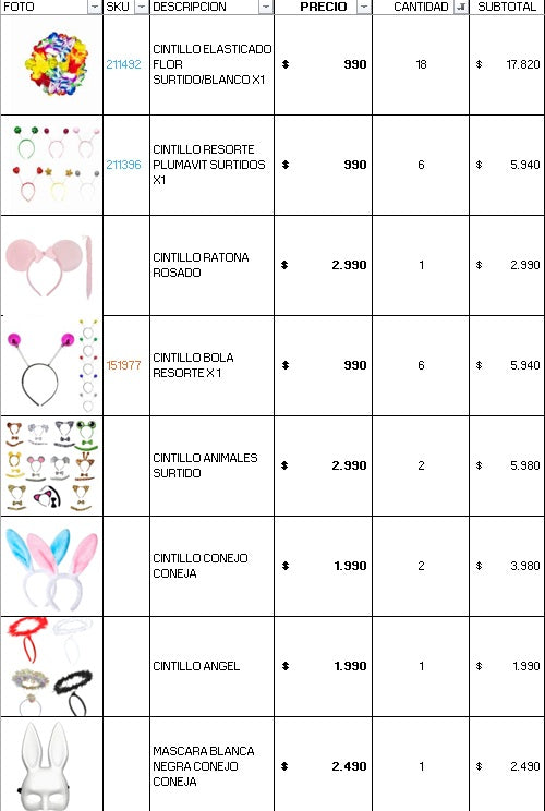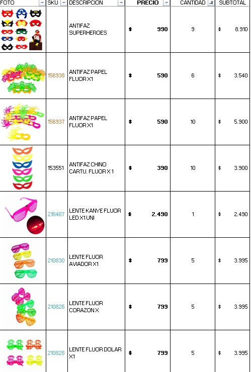 *Si algun producto se agota, podemos reemplazar por uno del mismo valor y categoria.