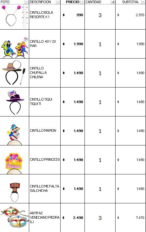*Si se Encuentra un ítem agotado ,este se sustituirá por uno del mismo valor y calidad.
