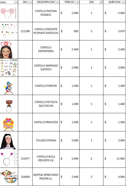 *Si se Encuentra un ítem agotado ,este se sustituirá por uno del mismo valor y calidad.