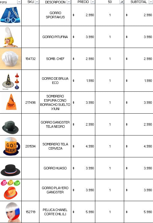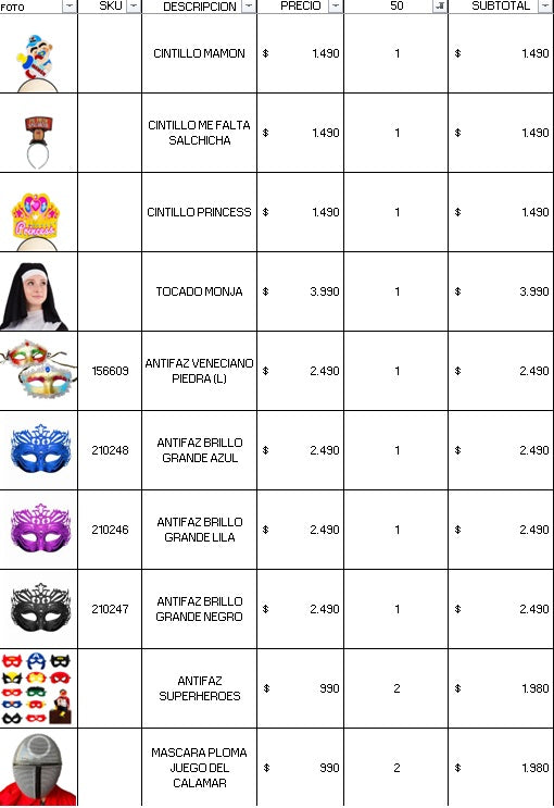 *Si se encuentra un artículo agotado, este se sustituirá por uno del mismo valor y calidad.