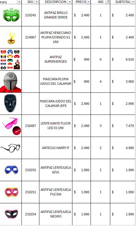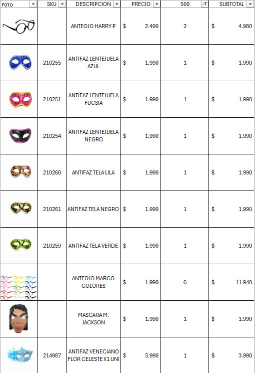 🎭 Antifaces, Máscaras & Lentes (200+ unidades)