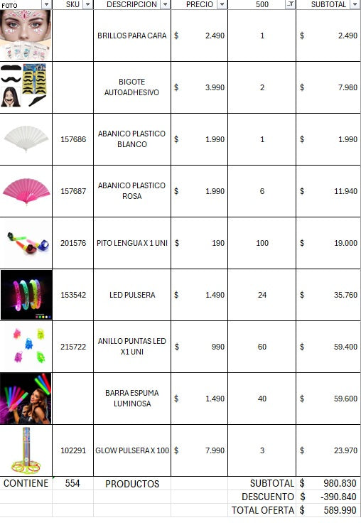 *Si se Encuentra un ítem agotado ,este se sustituirá por uno del mismo valor y calidad.