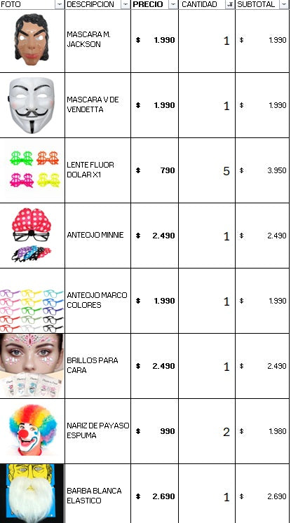 ✨ ACCESORIOS VARIOS (LUZ, PAYASO, BARBAS, COLLARES, PITOS)
